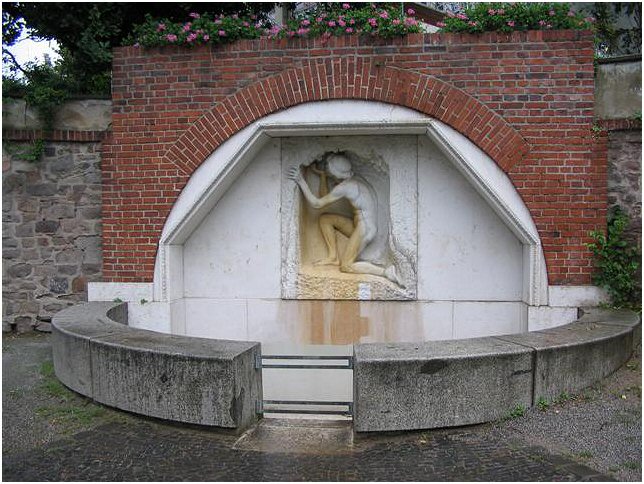 Om daar te komen passert men de "Löwentor". De Leeuwenpoort was een gezamenlijk project van de architect Albin Müller en de beeldhouwer Bernard Hoetger. Hij stond aanvankelijk op de Mathilden höhe tijdens de expositie van 1914