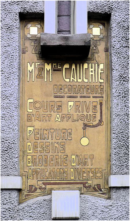 Het pand werd rond 1905 ontworpen door Paul Cauchie als woon- en bedrijfsruimte voor toegepaste kunsten voor hem en zijn minstens zo creatieve vrouw Lina Cauchie-Voet. Het echtpaar heeft een productief en naar het zich laat aanzien, ook gelukkig leven in dit huis doorgebracht.