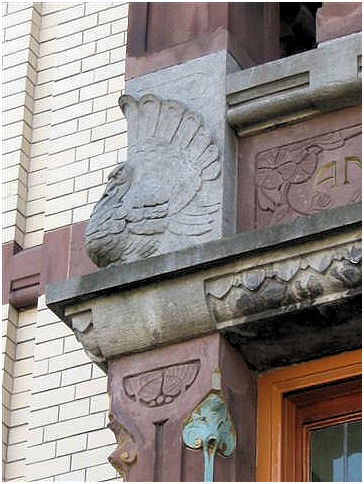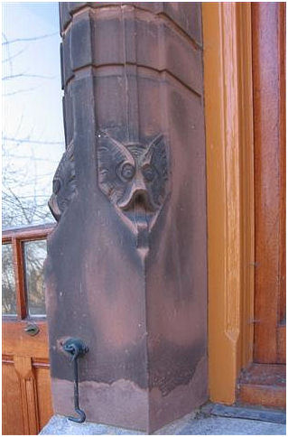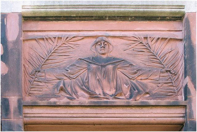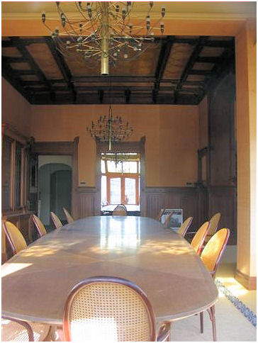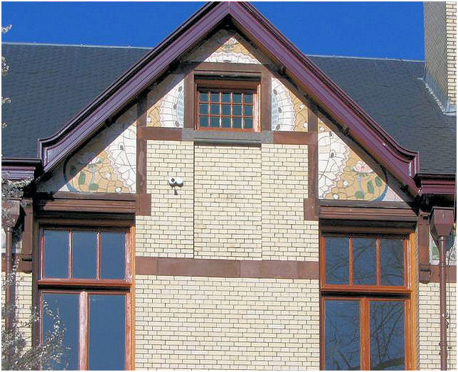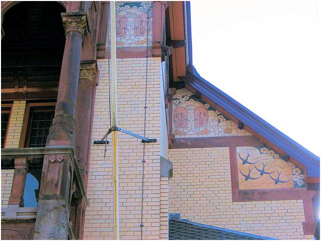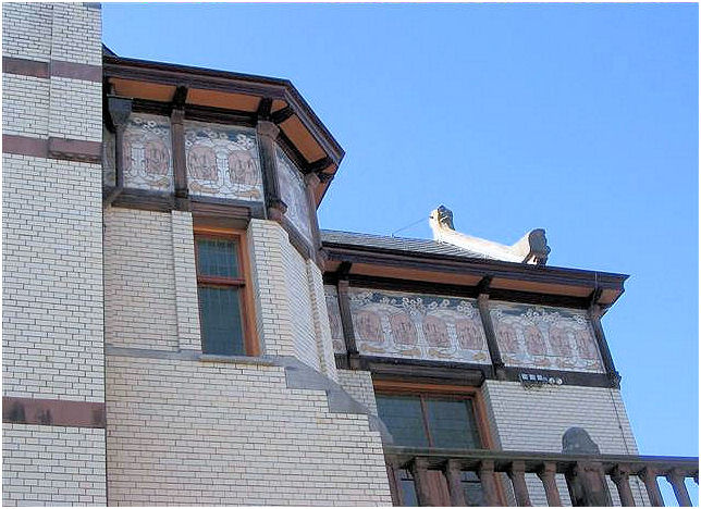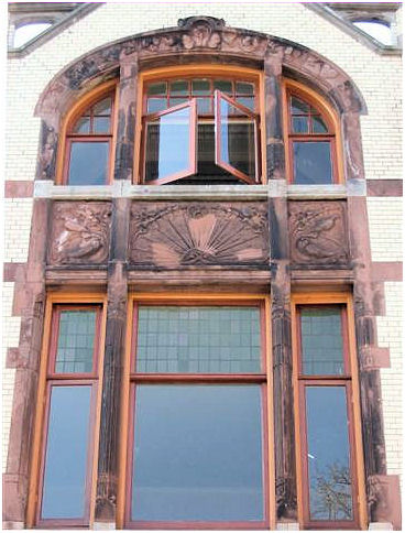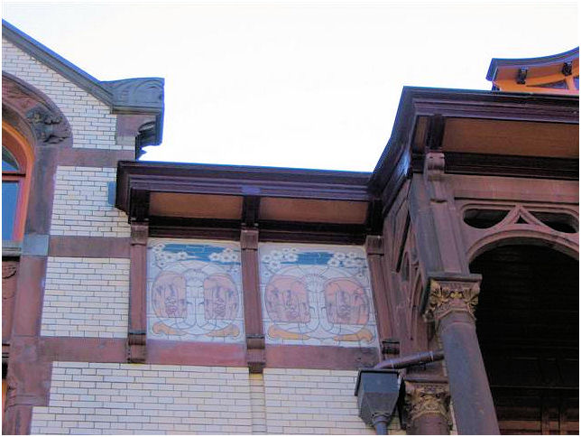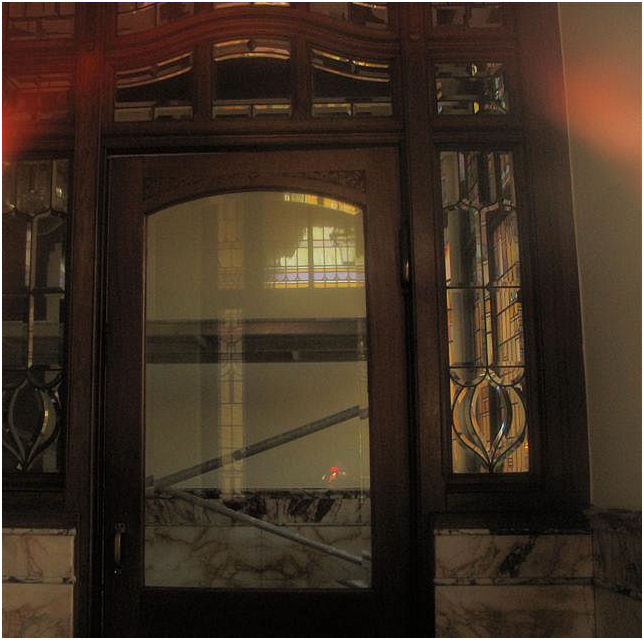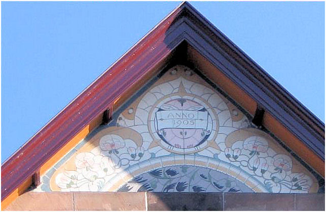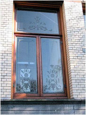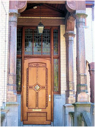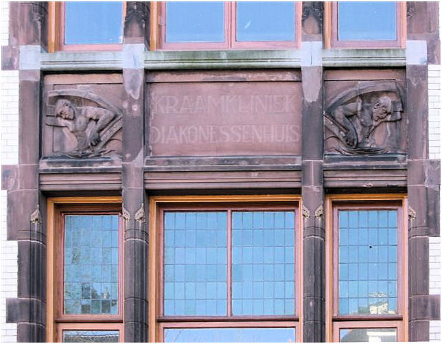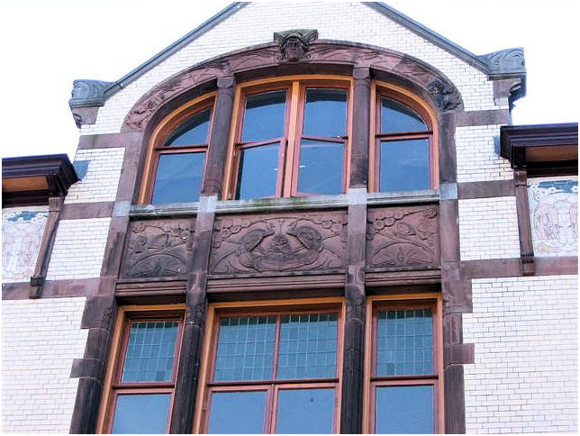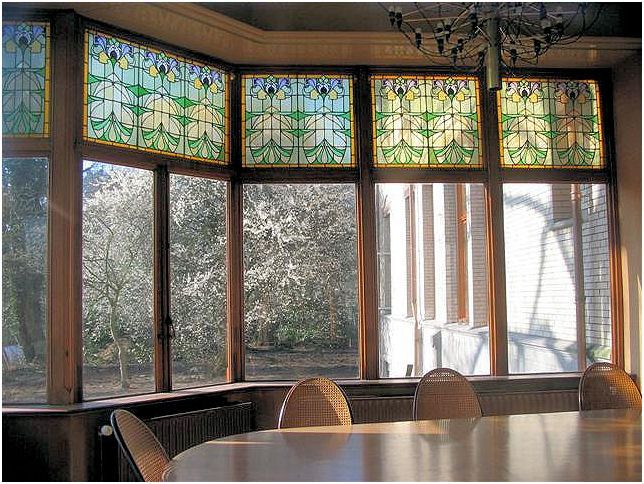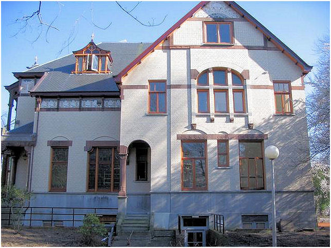 ( i.e. The lady wit the straw) . The interior has many details in fine materials. Stained- and etched glass windows, woodcuttings are well conserved and give an impression of the gesammt kunst Jugendstil intended to be. In the period 1948-1981 this building was a maternity home.
