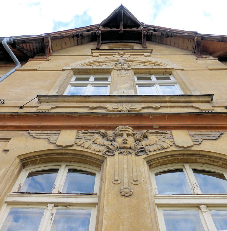 A lucky find in the surroundings of our camping place. A stately Art Nouveau building, nowadays the headquarter of the Bohemian Preciosa glassworks.